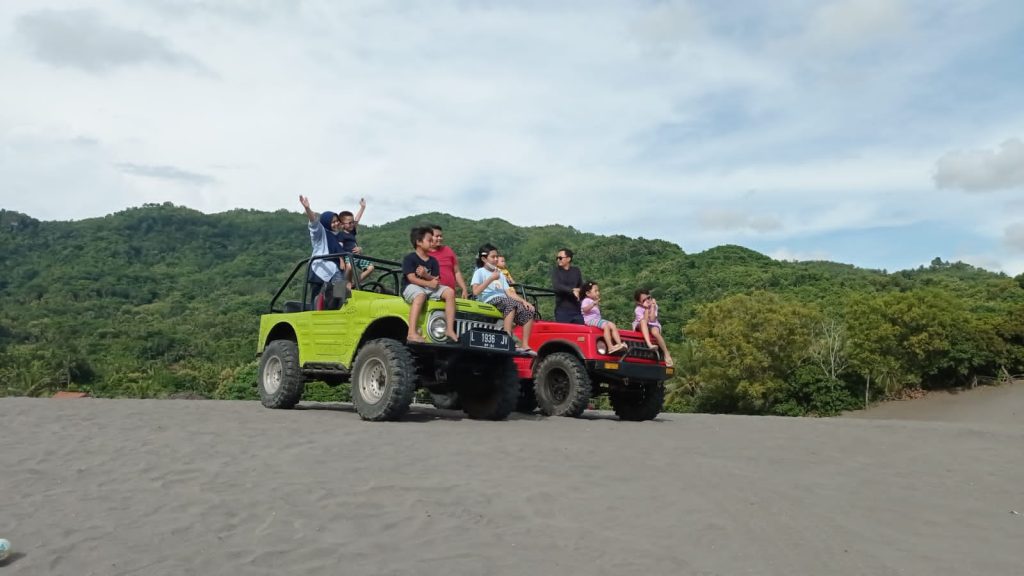 Jeep wisata di Pantai Parangtritis adalah pengalaman seru bagi pengunjung yang ingin menjelajahi keindahan pantai yang eksotis dengan gaya petualangan. Di sini, Anda bisa menyewa jeep khusus yang dilengkapi untuk menjelajahi pasir pantai yang luas dan berkeliling melintasi tebing-tebing batu yang megah. Selain menikmati pemandangan alam yang spektakuler, Anda juga dapat merasakan sensasi menyenangkan dari mengendarai jeep melintasi medan berpasir. Selain itu, beberapa operator tur juga menawarkan paket perjalanan yang melibatkan aktivitas lain seperti menikmati sunset atau berkunjung ke objek wisata terdekat di sekitar Pantai Parangtritis.